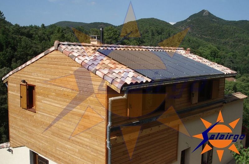 Installation photovoltaïque à Saint Hippolyte du Fort dans le Gard (30) en raccordé réseau. Système pose en toiture semi-intégrée au bâti pour une esthétique conservée. Puissance de l’installation 3kWc gérée par un onduleur SMA Sunny Boy de fabrication Allemande